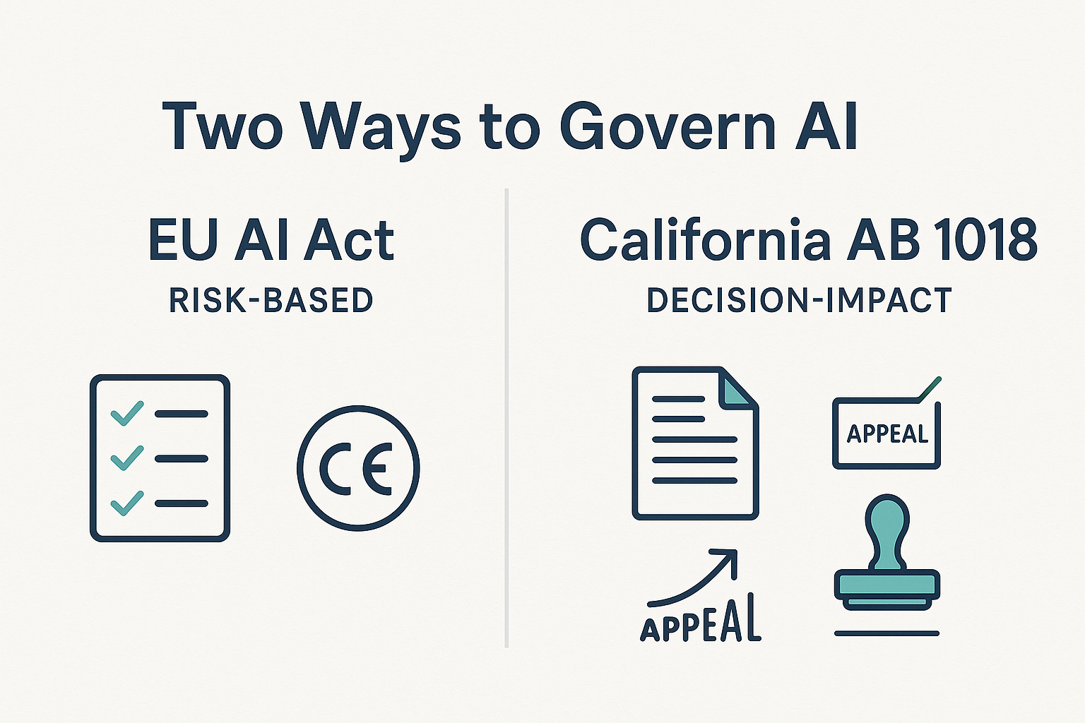 California’s AB 1018 vs the EU AI Act — same goal, different routes