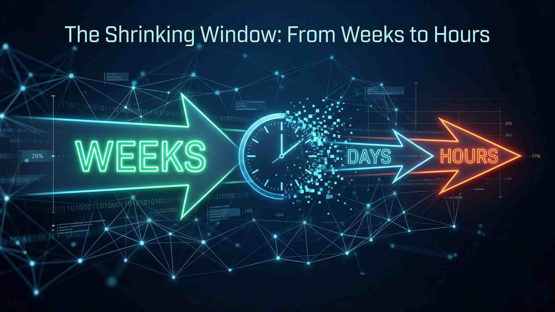 Perhaps most concerning is the compression of exploitation timelines. The window between vulnerability disclosure and active exploitation has collapsed from weeks to hours, with high-impact flaws now weaponised within 4 to 8 hours of CVE publication [4]. This means traditional patch management cycles — where organisations review, test, and deploy fixes over days or weeks — are increasingly inadequate against adversaries operating at AI-accelerated tempo.